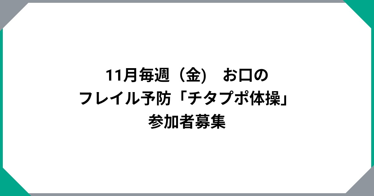 11月毎週(金) お口のフレイル予防「チタプポ体操」参加者募集