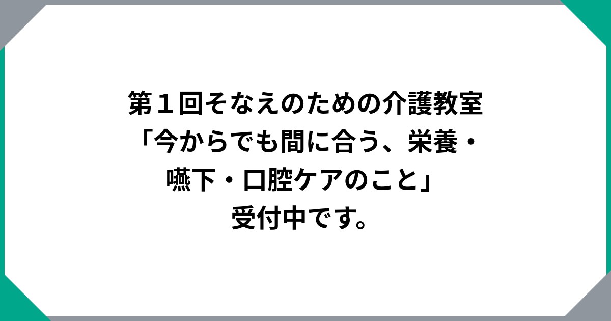 第1回そなえのための介護教室「今からでも間に合う、栄養・嚥下・口腔ケアのこと」受付中です。