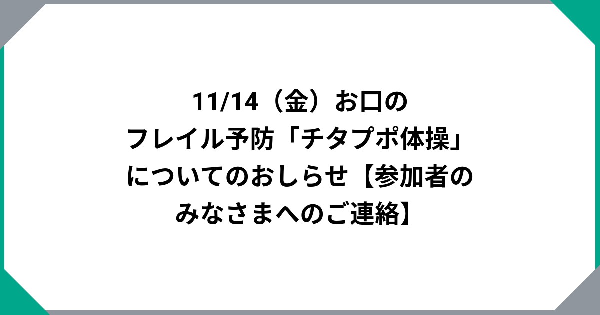 11/14(金)お口のフレイル予防「チタプポ体操」についてのおしらせ【参加者のみなさまへのご連絡】