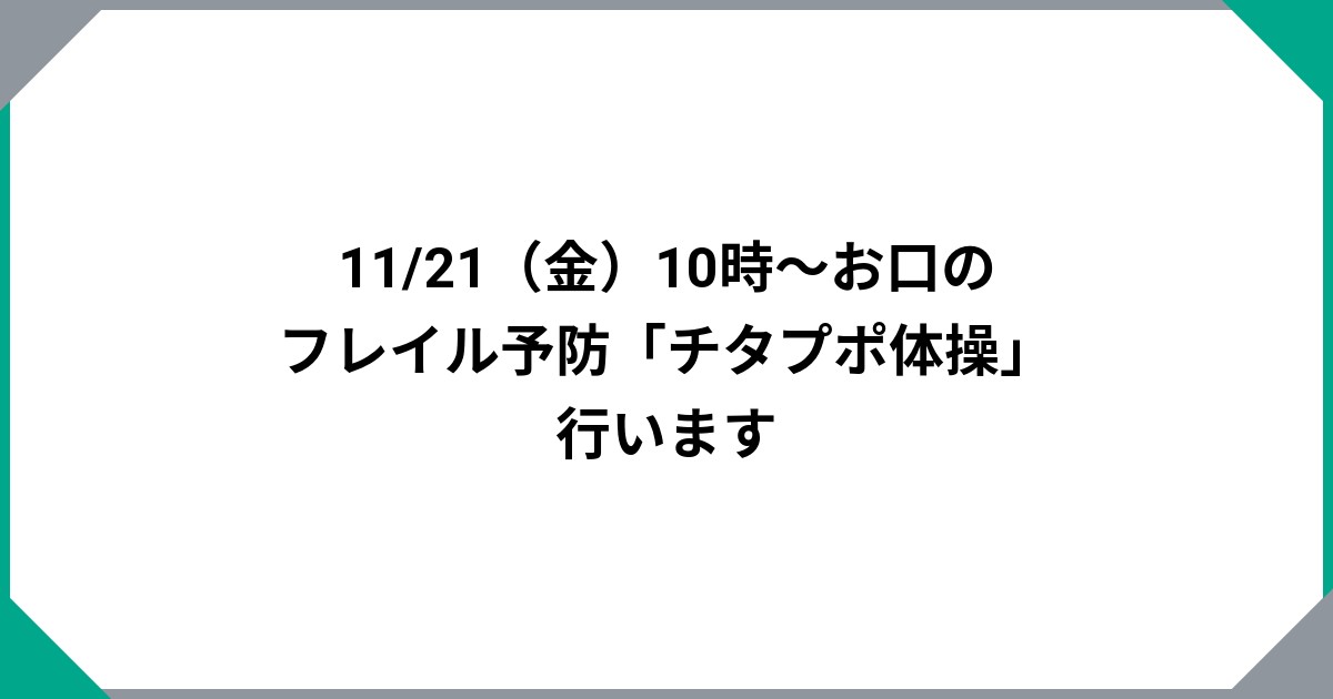 11/21(金)10時~お口のフレイル予防「チタプポ体操」行います