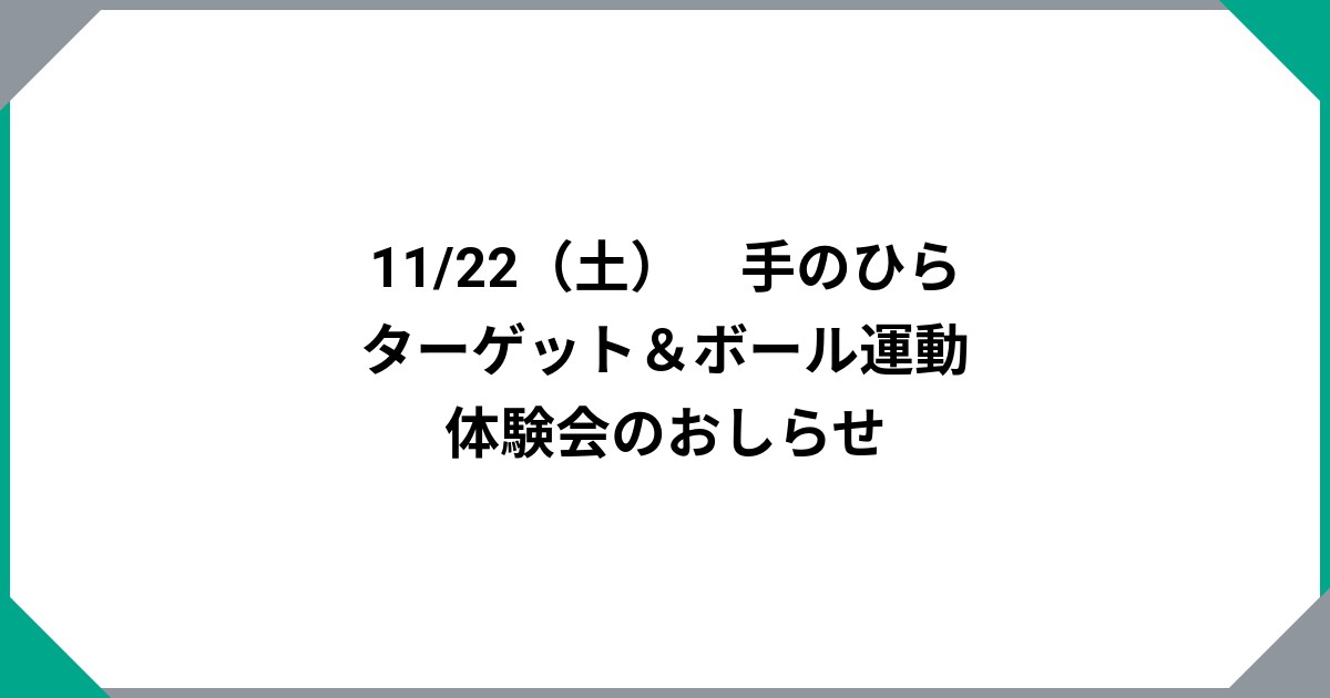 11/22(土) 手のひらターゲット&ボール運動 体験会のおしらせ