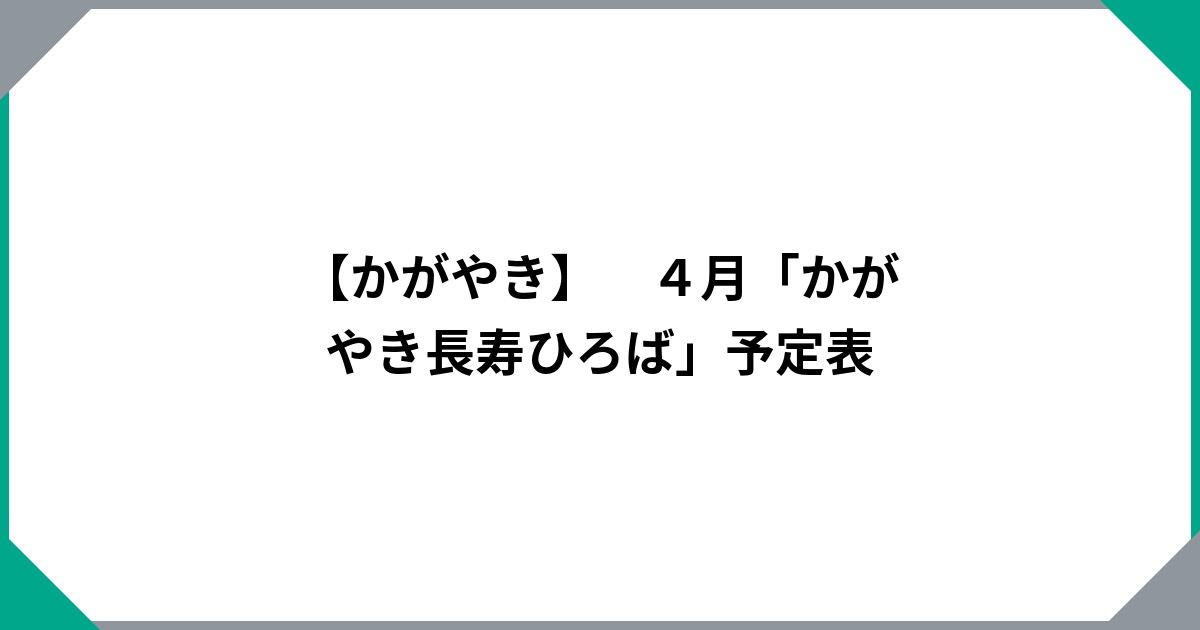 【かがやき】 4月「かがやき長寿ひろば」予定表