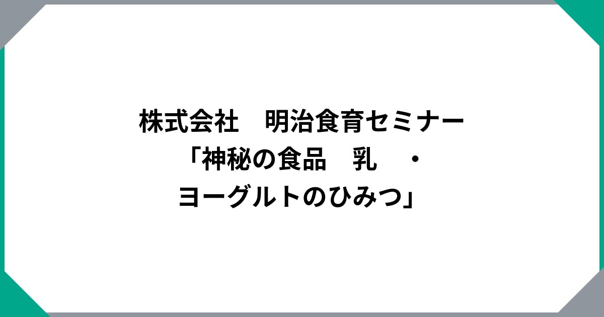 株式会社 明治食育セミナー「神秘の食品 乳 ・ヨーグルトのひみつ」
